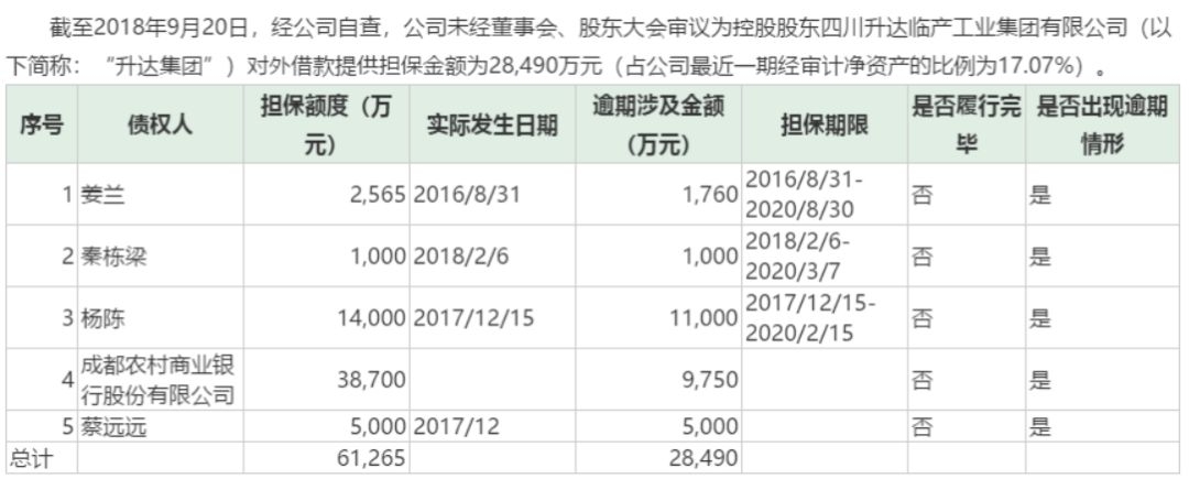 对于升达集团承诺的一个月内解决对公司的资金占用和违规担保问题,升达林业在公告中表示,两项问题均无法在9月29日之前解决。而升达集团给出的后续解决方案是筹措资金、引入战略投资者。