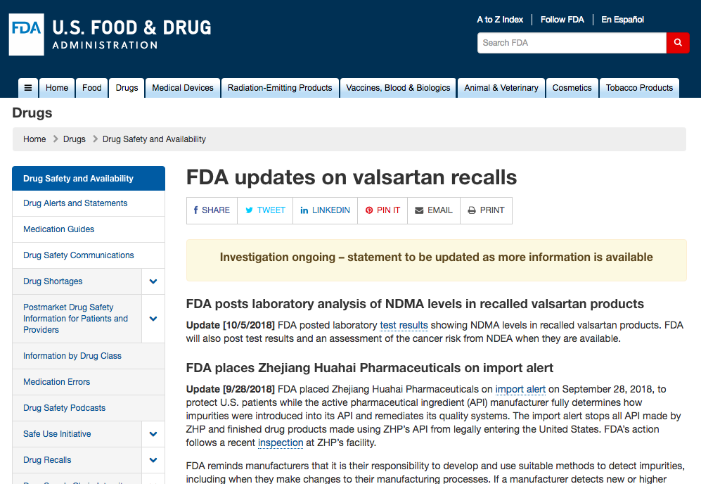 此前9月28日,美国食品药品监督管理局(FDA)对华海药业“缬沙坦”(一种ARB类降压药)原料药及其制成的制剂发布进口禁令,使得这家国内原料药巨头近日显得异常焦灼。