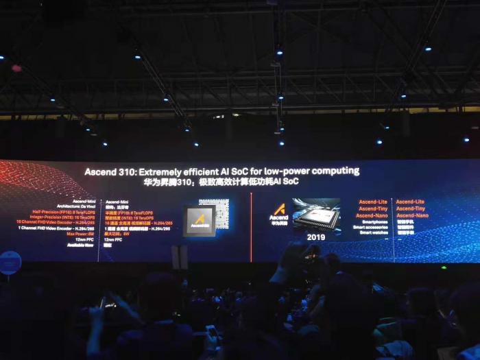 徐直军还介绍道,昇腾310是目前面向计算场景最强算力的AI SoC,2019年将应用于智能手机、智能附件、智能手表中。同时,基于腾310 华为将有各个领域的硬件产品,包括AI加速模块、AI加速卡、AI智能小站、AI一体机、移动数据中心等。