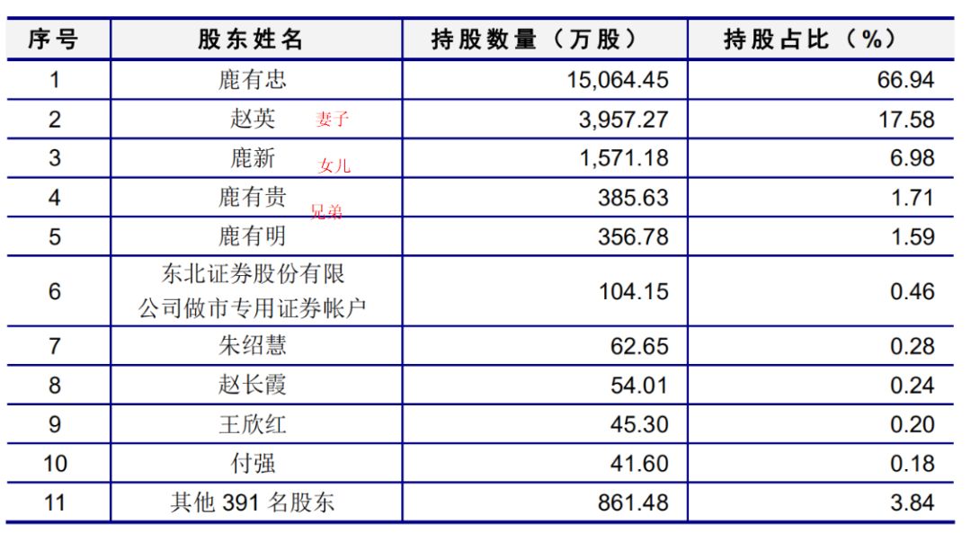 整个“鹿氏家族”合计持股比例高达94.8%。