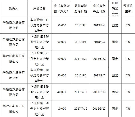 以白银有色为例,公司9月22日公告称,共动用25亿元自有资金委托管理人华融证券进行投资理财,共涉及华证价值6个定向资产管理计划。