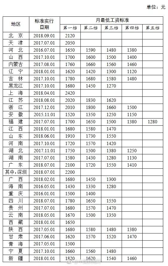 3、9月,上海月最低工资标准达到2420元,为全国最高。