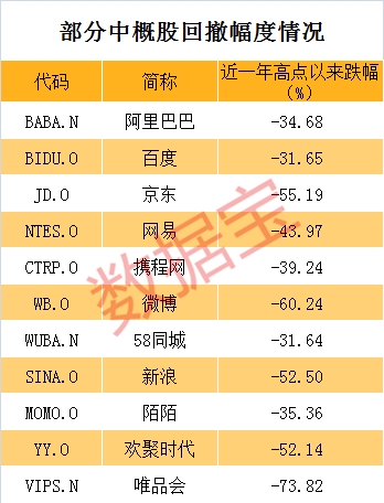 中概股的回调幅度相比A股也不遑多让。数据显示,唯品会、京东、微博等个股最新价较近一年高点回撤超过50%,网易回撤超过40%,阿里巴巴回撤接近35%。