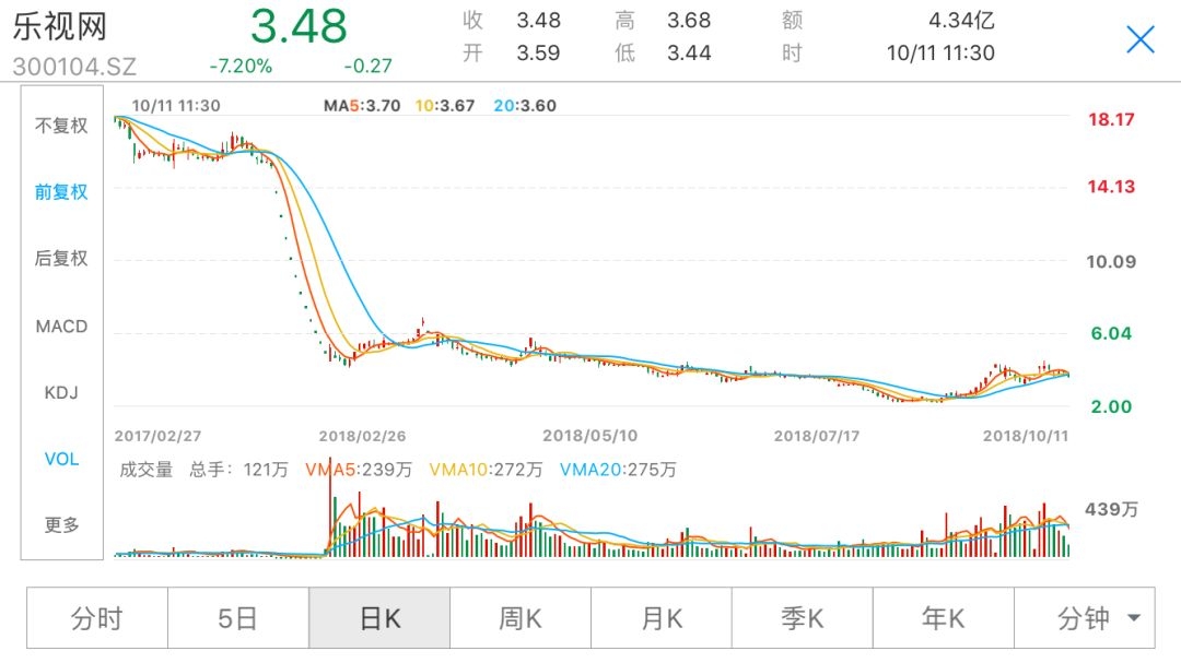 乐视网最新股价不足历史高点零头