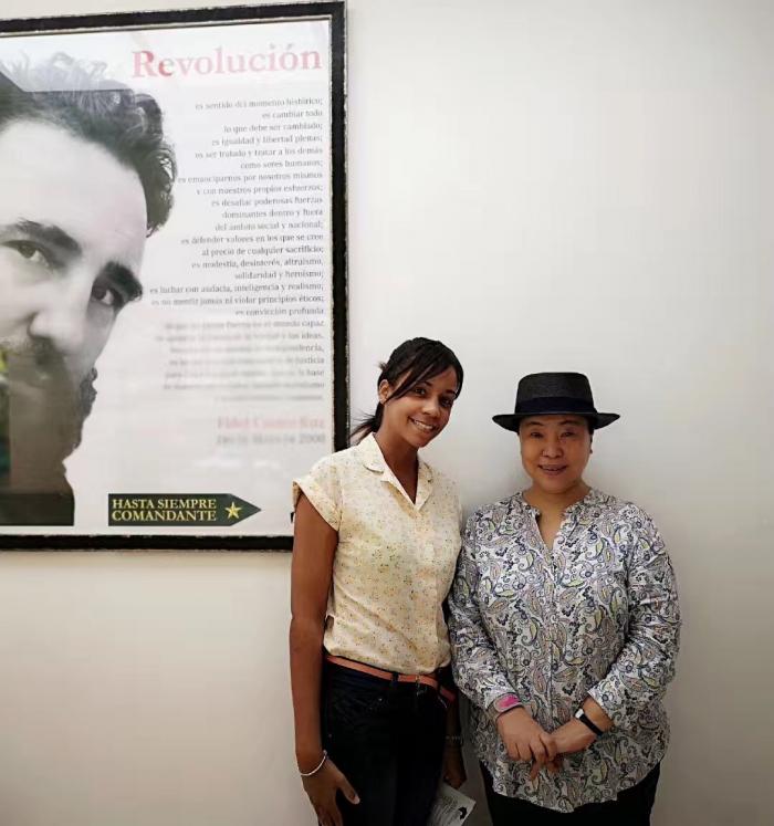Janet毕业于哈瓦那大学Social Community专业,之后获得国际关系硕士学位,目前已经在中国孔子学院学习了三年中文。在西班牙语谈话中,她偶尔会蹦出几个中文词汇。她羞涩地说:“我的写作比口语更好。”当问到亚洲记者到古巴采访的频率排序时,她说中国、日本、越南排在前三位,新华社驻古巴分社的记者经常会找她联系采访各种各样的新闻。她还介绍说,国际新闻中心也会收到来自西方媒体的采访申请。