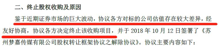 一位业内人士分析,最近整体市场大幅下跌,公司股价出现波动属于正常现象,收购终止的很大一部分原因应该是由于“对标的的估值差异也比较大”,可能是感觉买贵了。不过终止收购没有给上市公司造成太大影响,就框架协议约定支付的1 亿元“排他费用”,苏州梦嘉股东各方10 个工作日内将全额按照各自收款金额予以退还。