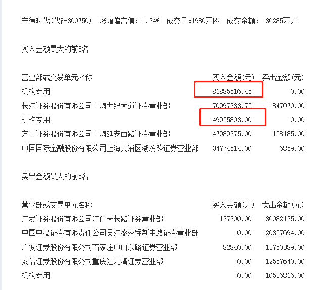 宁德时代涨停,两机构席位抢筹1.32亿元