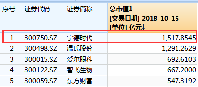 截至今日收盘,宁德时代最新市值高达1518亿元,高居创业板市值榜首,比市值排名创业板第二的温氏股份高出227亿元,比爱尔眼科市值的两倍还多100多亿元。