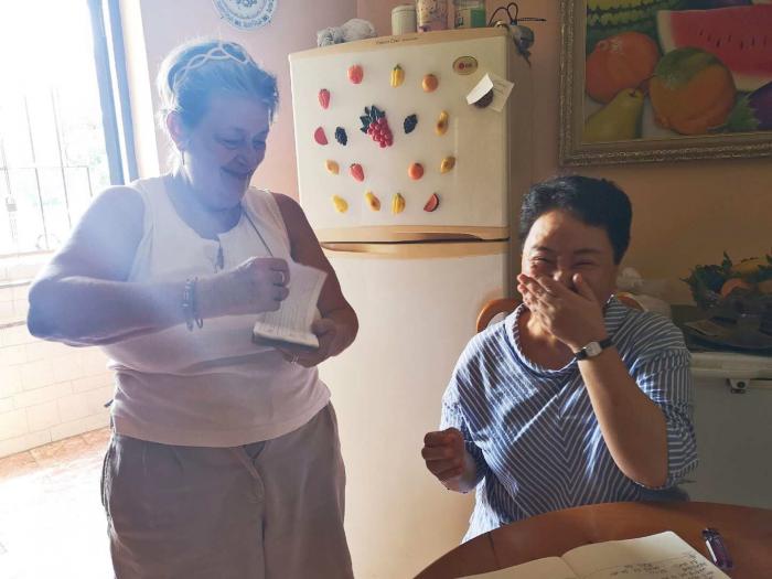 去之前特意到一家私人蛋糕店为她买了一个8红比索的蛋糕(相当于60元人民币)。今天的话题是住房、医疗、食品、工资。
