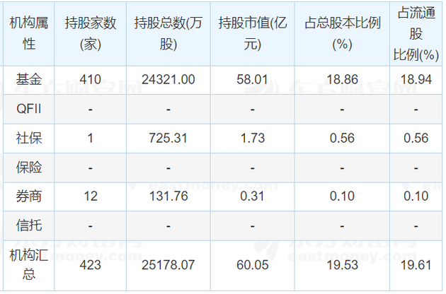 2018年中报显示,有423家机构合计持有浪潮信息,合计持有2.52亿股,持股占流通股比例为19.61%,占总股本比例为19.53%,其中基金为持股第一大户。