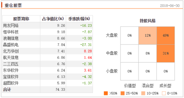 以华安媒体互联网为例,据中报显示,基金前十大重仓股占资产净值比例达74.33%,其中多为与软件、电子等相关的科技成长股。