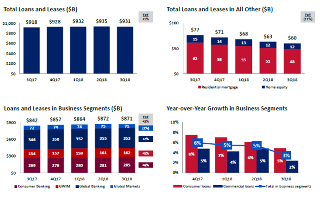 美国银行周一股价下跌,此前该银行公布商业贷款增长放缓,原因是企业纷纷转向资本市场,而不是传统的银行贷款。之前数据显示,尽管资产负债表的质量总体上有所改善,但美国银行公布的贷款和租约数量略有下降。今年第三季度,贷款和租约从9.35亿美元降至9.31亿美元,而业务部门的贷款下降了100万美元。