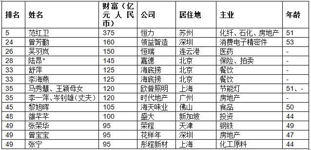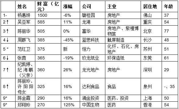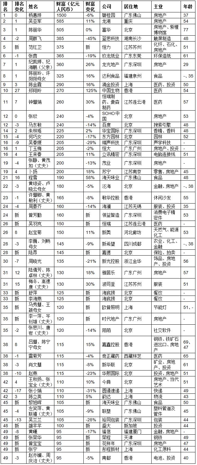 13位女富豪新上榜者,“火锅女王”舒萍在列
