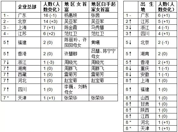 从企业总部及出生地来看,杨惠妍仍是广东女首富,而广东白手起家女首富是张茵;上海女首富是陈金霞,而上海白手起家女首富是马秀慧;福建女首富是陈丽玲、许阳阳母女,而福建白手起家女首富是黄曦;香港女首富是许慧卿,而香港白手起家女首富是吕慧、陈宁宁母女。
