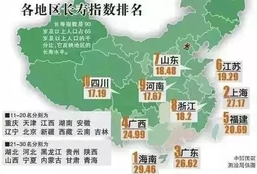这张全国长寿地图值得我们每个人看一看,并从中吸取长寿的经验和秘诀,祝所有的中老年朋友都身体健康、长命百岁!