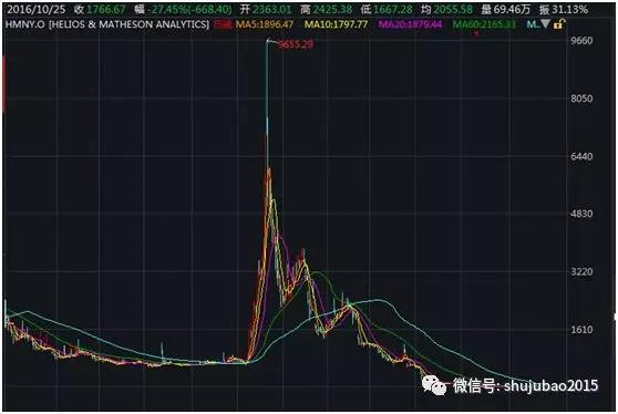 Helios and Matheson Analytics Inc是今年以来表现最差的美股,累计跌幅高达99.9988%。数据显示,该股去年底收盘价为6.31美元,最新价为0.0193美元。而往前追溯,去年10月11日该股盘中最高价达到9655.29美元。也就是说,在1年时间里面,这只股票股价从近万美元跌到不足两美分,真是跌到渣都不剩。
