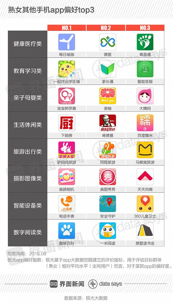 从健康医疗类、教育学习类等app偏好中可以发现,熟女不仅关注自身美丽与健康,更多也关注着孩子的学习和健康。