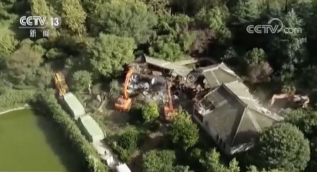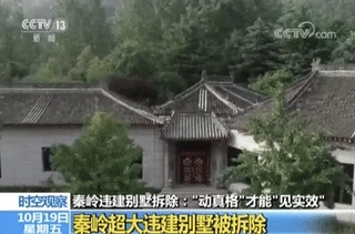 7月底开始,陕西省秦岭北麓西安境内展开专项整治行动,整治重点是违建别墅。两个月来,大量违规别墅逐步被拆除,近日,这片区域规模最大的单体违建别墅也被拆了。