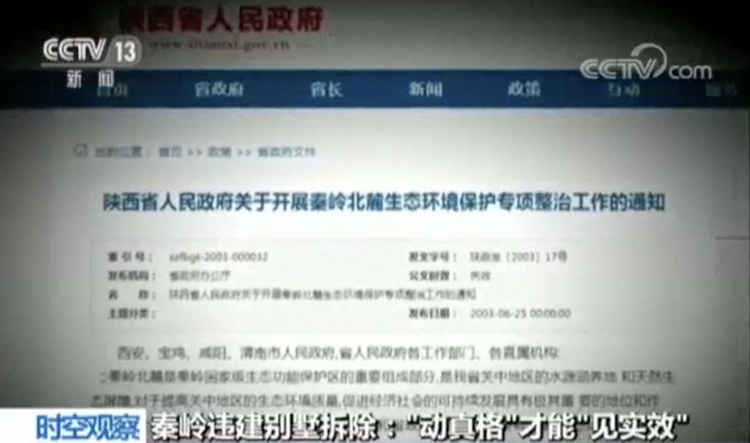 “禁止任何单位和个人在秦岭北麓区域内从事房地产开发,修建商品住宅和私人别墅。”这是2003年,陕西省人民政府发布的通知。