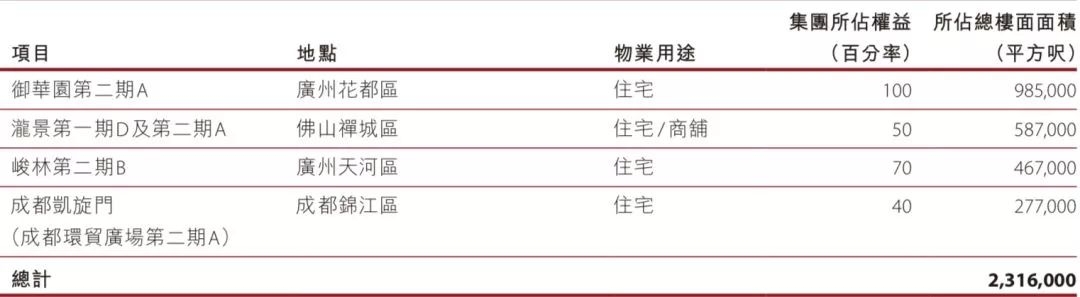 其于2010年入股的第一个项目是长实集团的马头角君柏,已于2016年开售。2012年又以28.26亿元拿下将军澳南项目,同年开售。