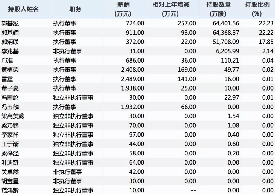 2017年年报显示高管薪酬和持股情况
