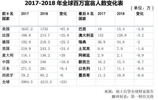 在这份报告中,截至2018年中期的12个月内,全球总财富增加了14万亿美元,达到317万亿美元,增长率约为4.6%。