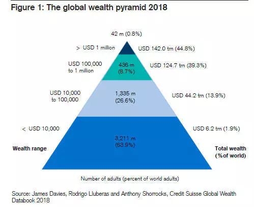 全球一半财富握在1%的人手中!中国家庭财富规模全球第二