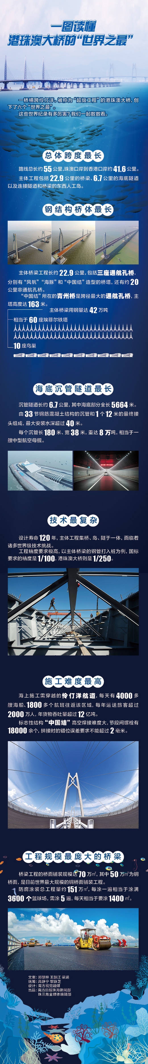 这座世界上最长的跨海大桥工程,跨越伶仃洋,东接香港,西接珠海和澳门。全长55公里,集桥、岛、隧于一身,被誉为“世界奇迹”。