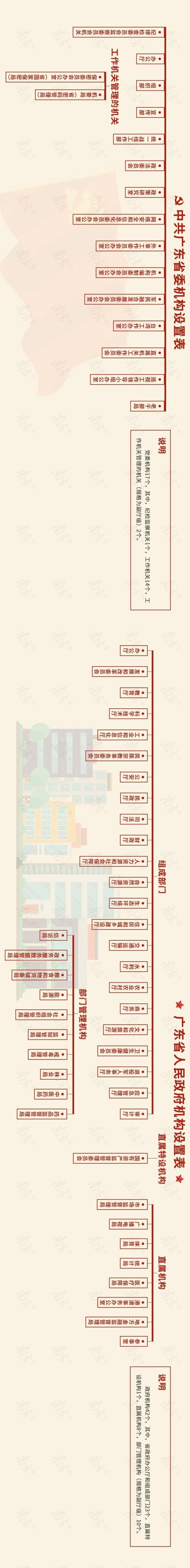 (请横屏观看改革后的“中共广东省委机构设置表”、“广东省人民政府机构设置表”)