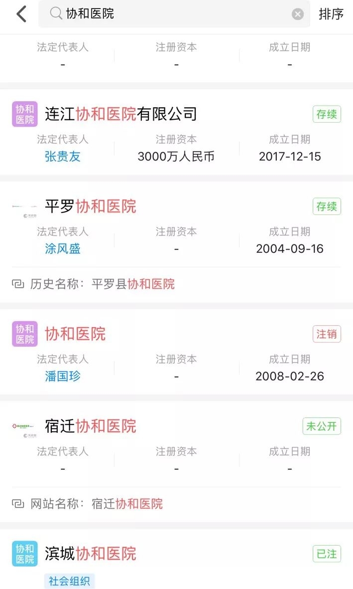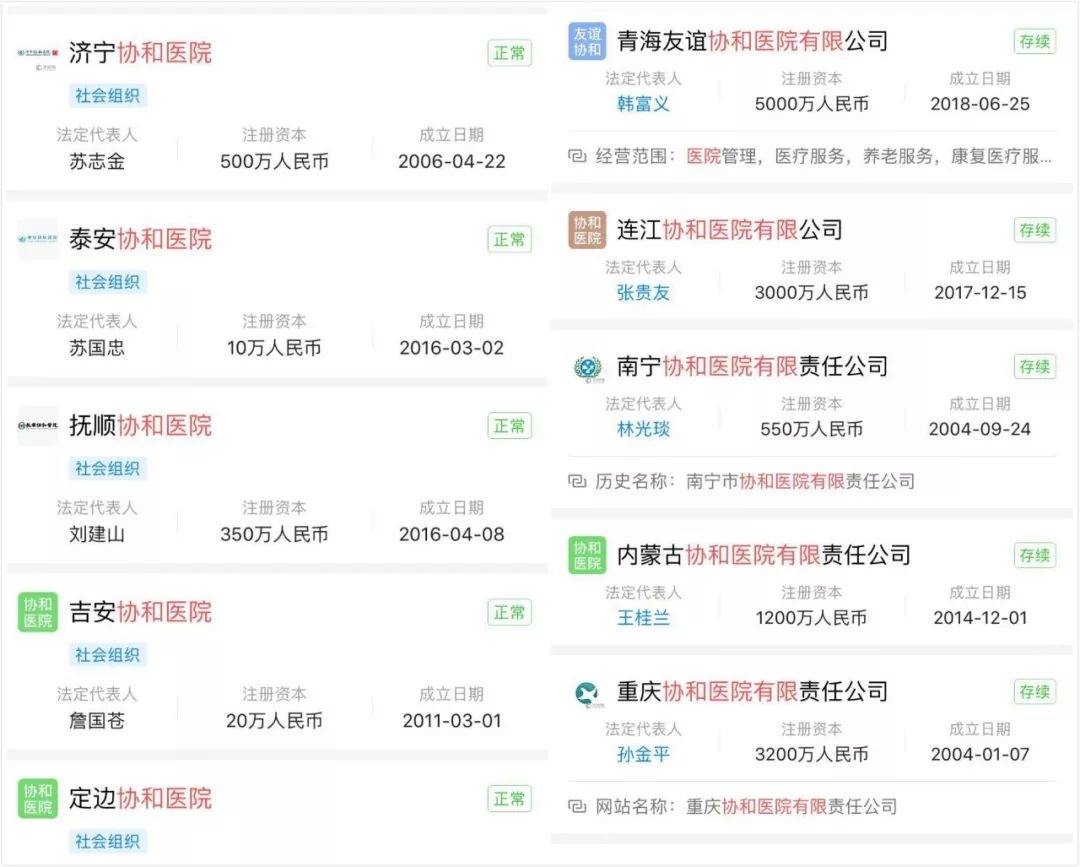在某检索平台输入“协和医院”,1700多家挂有协和标签的医院跃然眼前:
