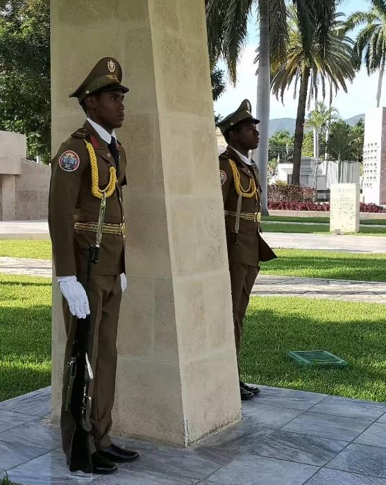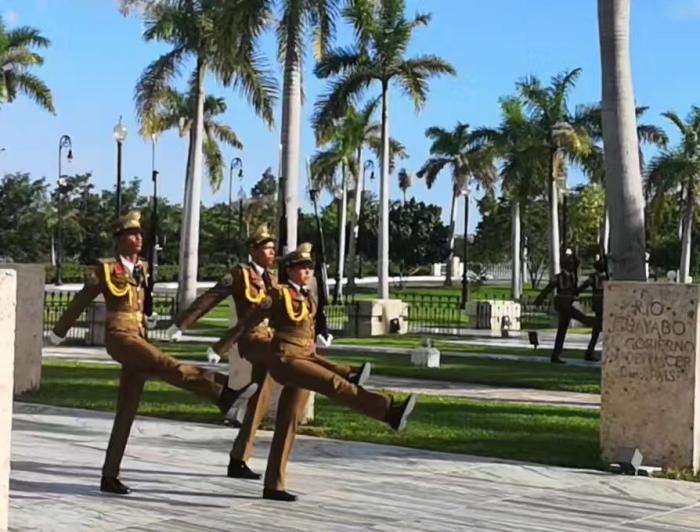 在墓地正好遇上了公墓卫兵换兵仪式,整个仪式庄严肃穆,士兵伴随着Elegía a José Martí(《我选择了何塞·马蒂》)这首恢弘且悲壮的乐曲,正步行进。