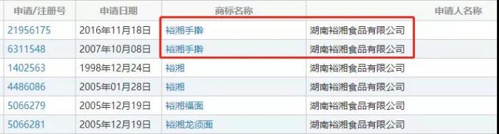 记者查阅中国商标网发现,“裕湘手擀”确已取得商标注册,该商标分横排竖排格式,分别于2010年和2018年获批商标使用权。商标类别皆归为30类,即含挂面、方便面、面条、米粉等在内的面类食品。记者致电裕湘食品公司,该公司陈姓工作人员回应称,“裕湘手擀银丝挂面”确实不是手工面,“裕湘手擀”只是一个商标,“只是按手工工艺加工的,并且我们是获得了专利的”。