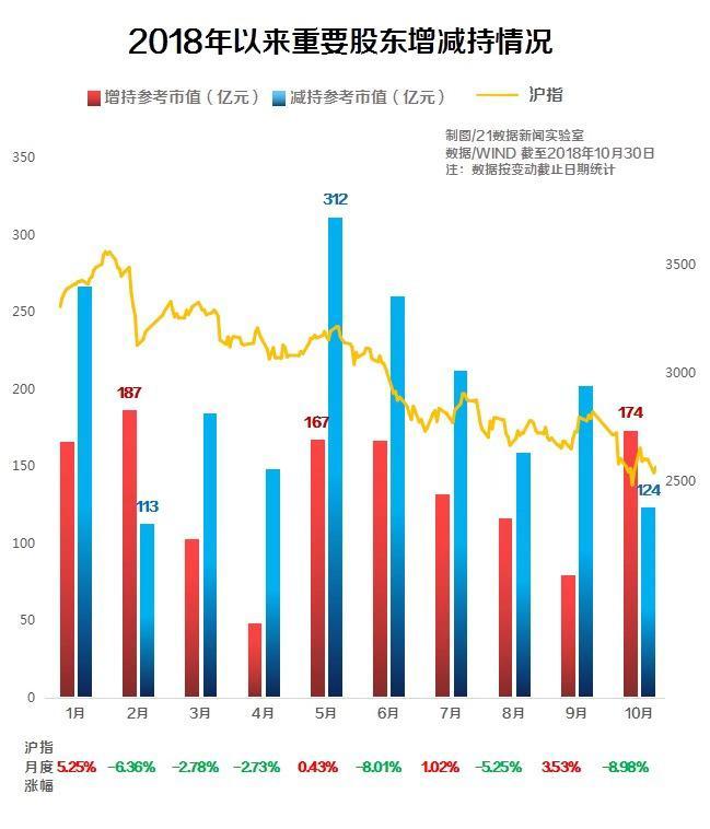 与此前的增持潮一样,2月和此次的增持潮均出现在股市相对偏弱的时间,属于急跌增持,截至目前,沪指10月下跌8.98%,为全年最大月度跌幅,而2月跌6.36%则为全年第三大跌幅。