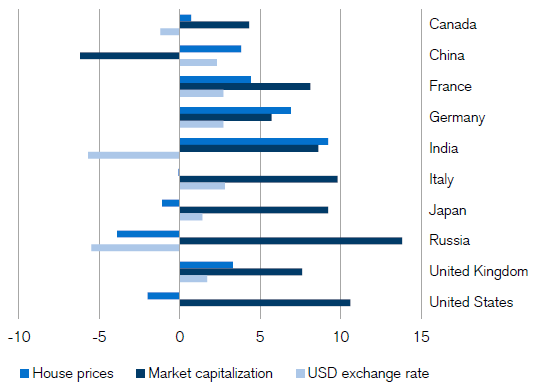 (股市、楼市、汇率对各国财富的影响,来源:瑞信)
