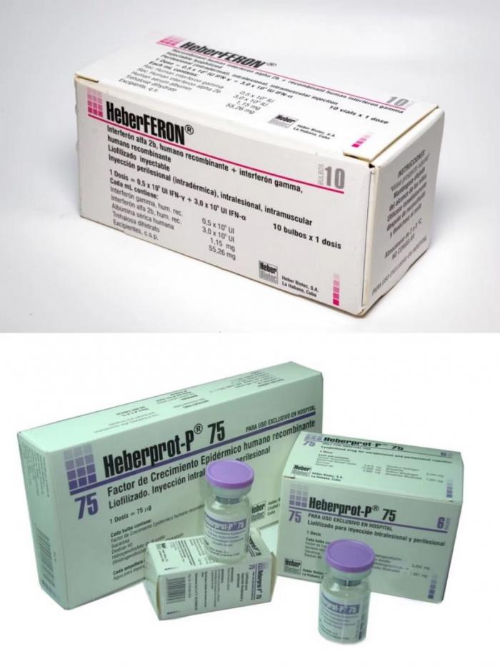 上为治疗皮肤癌的新药Heberferon,下为治疗糖足的药品herberprot-P。
