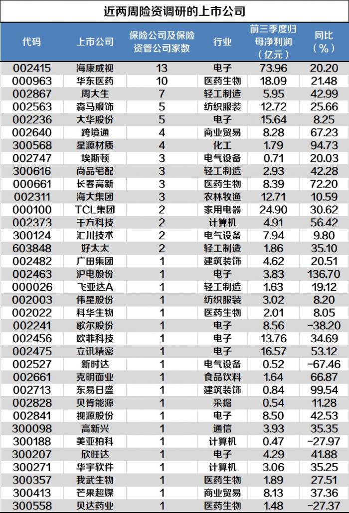 那么,这两个周,保险公司都调研了哪些上市公司呢?