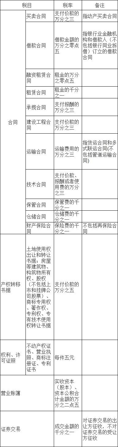 第四条 印花税的税目、税率,依照本法所附《印花税税目税率表》执行。