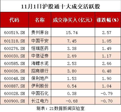 被誉为“聪明资金”的外资向来是市场的风向标,外资的动向尤为值得投资者关注。11月1日,沪股通数据显示,北上资金踊跃抄底,贵州茅台净买入15.74亿元,收涨2.57%。另外,深股通数据显示,洋河股份净买入5.89亿元,收涨6.62%。
