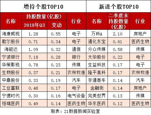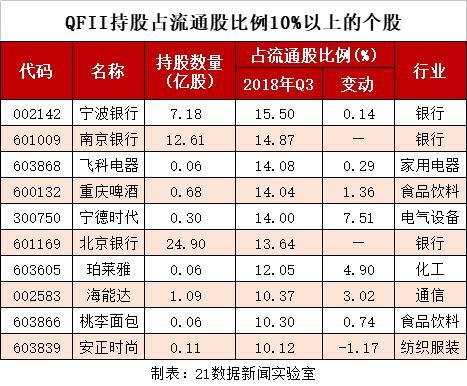 除此之外,外资还喜欢买哪些股票?恰逢上市公司2018年三季报披露收官,我们或者可以从QFII最新的仓位变动窥探一二。