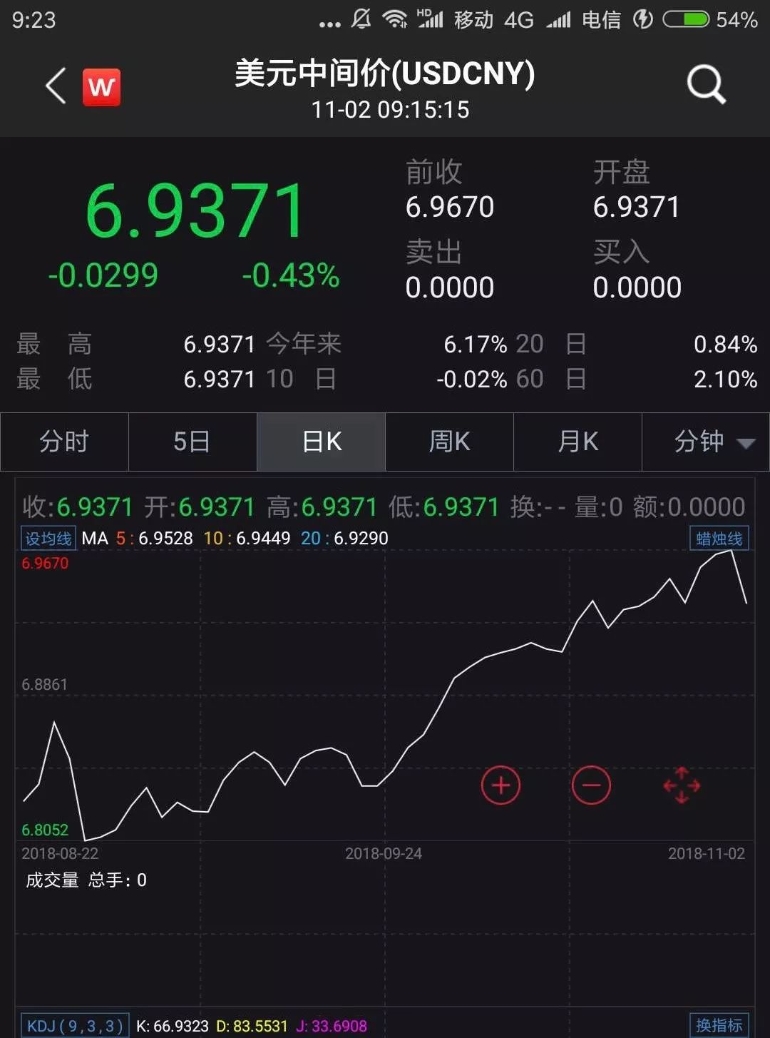 10月最后一周,人民币汇率连续突破6.96、6.97点位,屡创2008年5月以来新低。从周四亚盘至周四美股午盘,在岸人民币共收复六道关口,离岸人民币接连收复七道关口。
