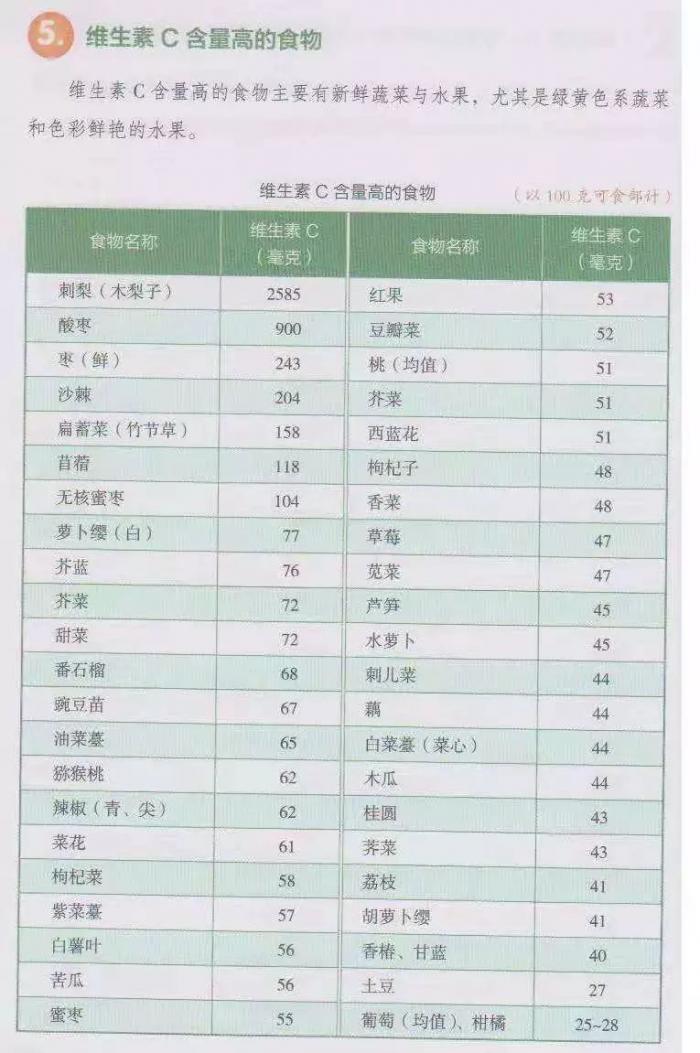 建议:食物中可获取足够维C