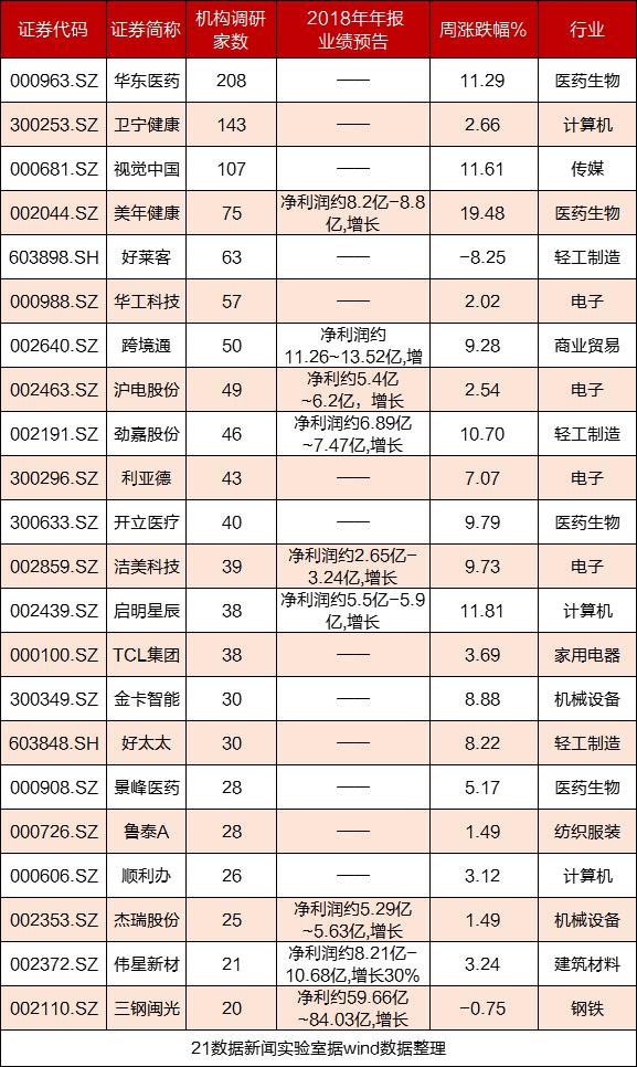 具体到上市公司,华东医药(208家)、卫宁健康(143家)、视觉中国(107家)均获得百家以上机构调研。