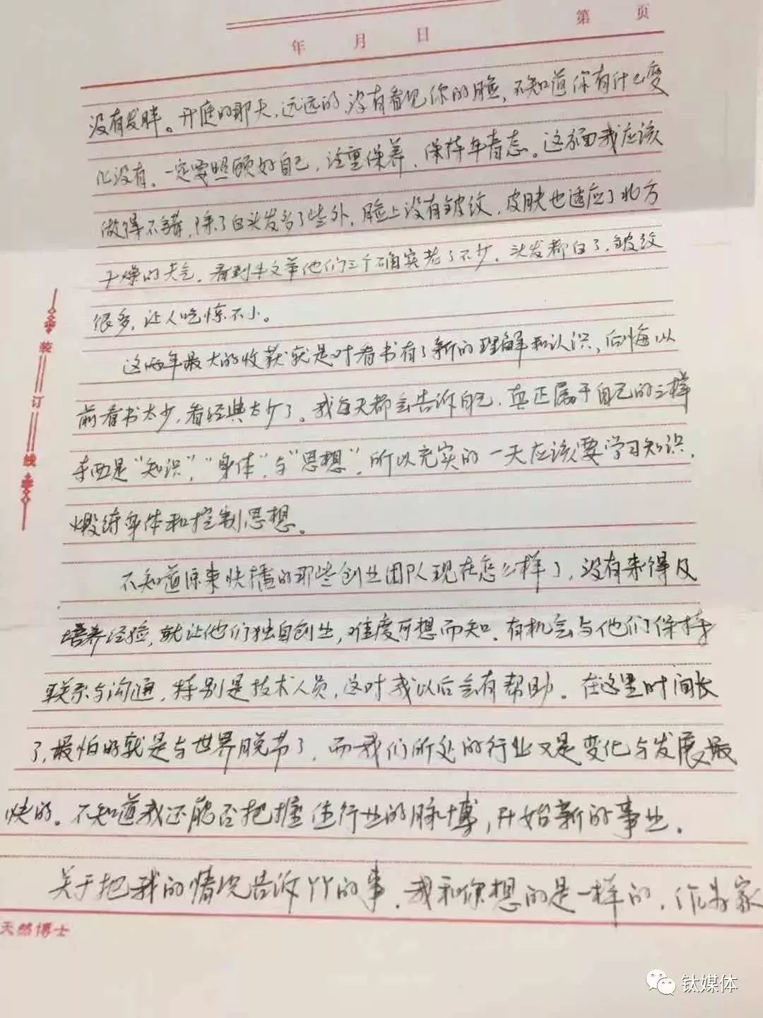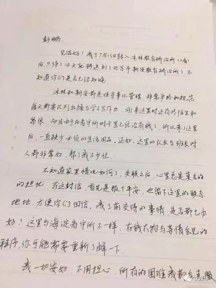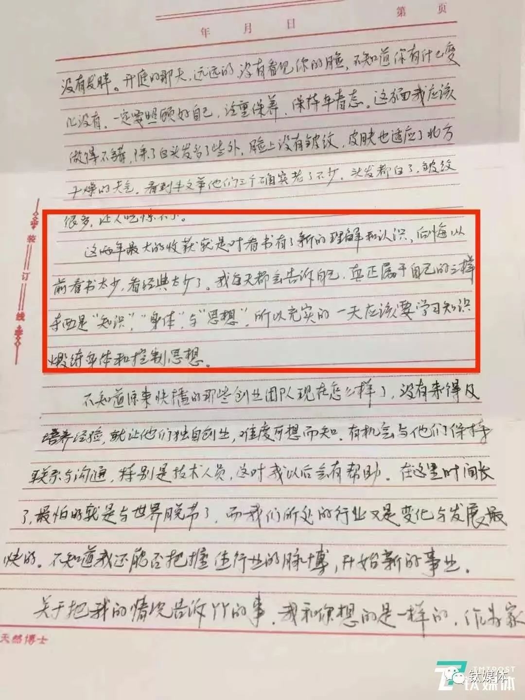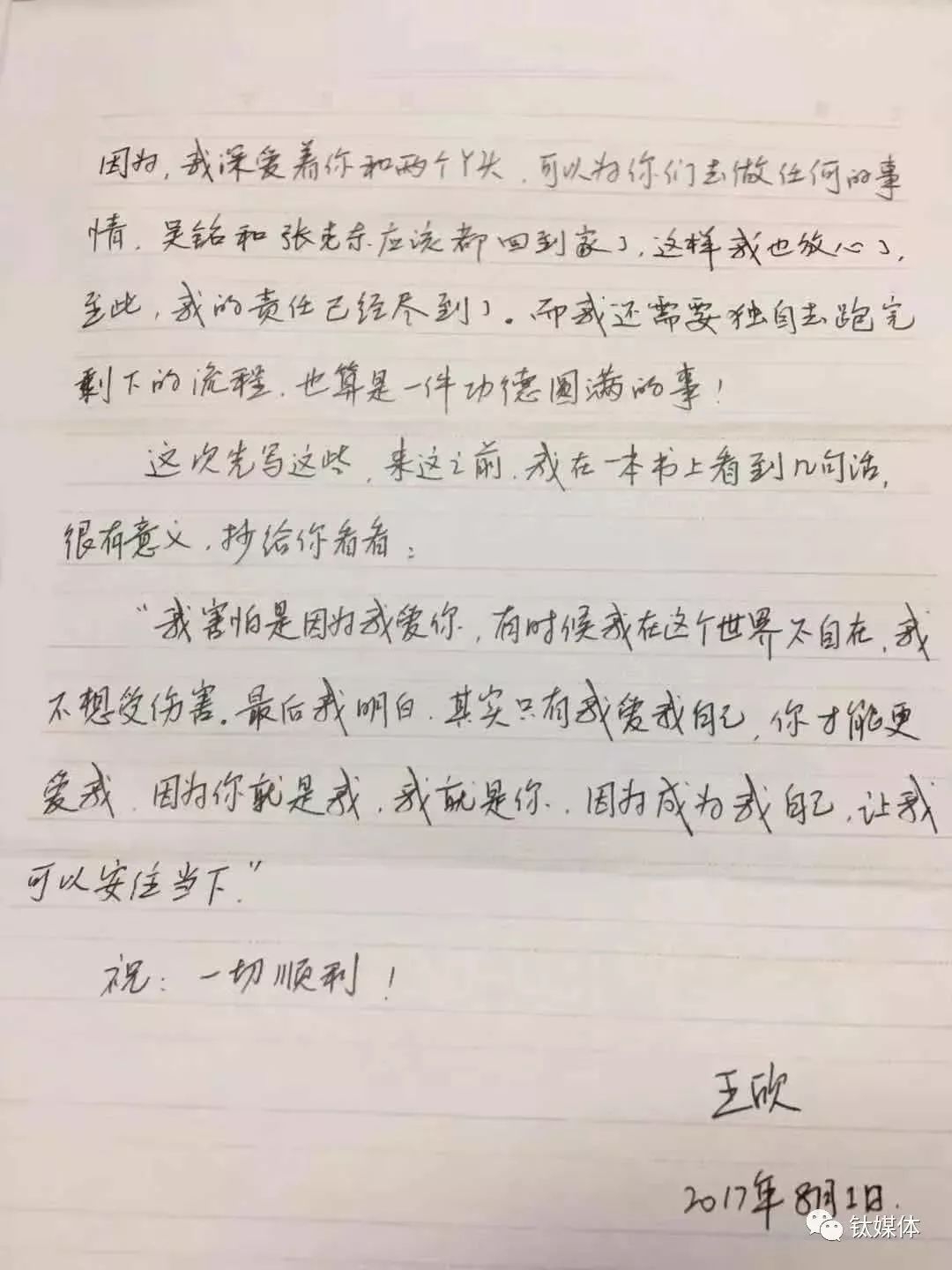 这是王欣出狱9个月后,首次被公开披露他的狱中生活,信中透露着狱中王欣在懊悔、无助中的挣扎,但同样也在亲人、和朋友的帮助下,对他本该经历的牢狱之苦慢慢适应和释怀了。