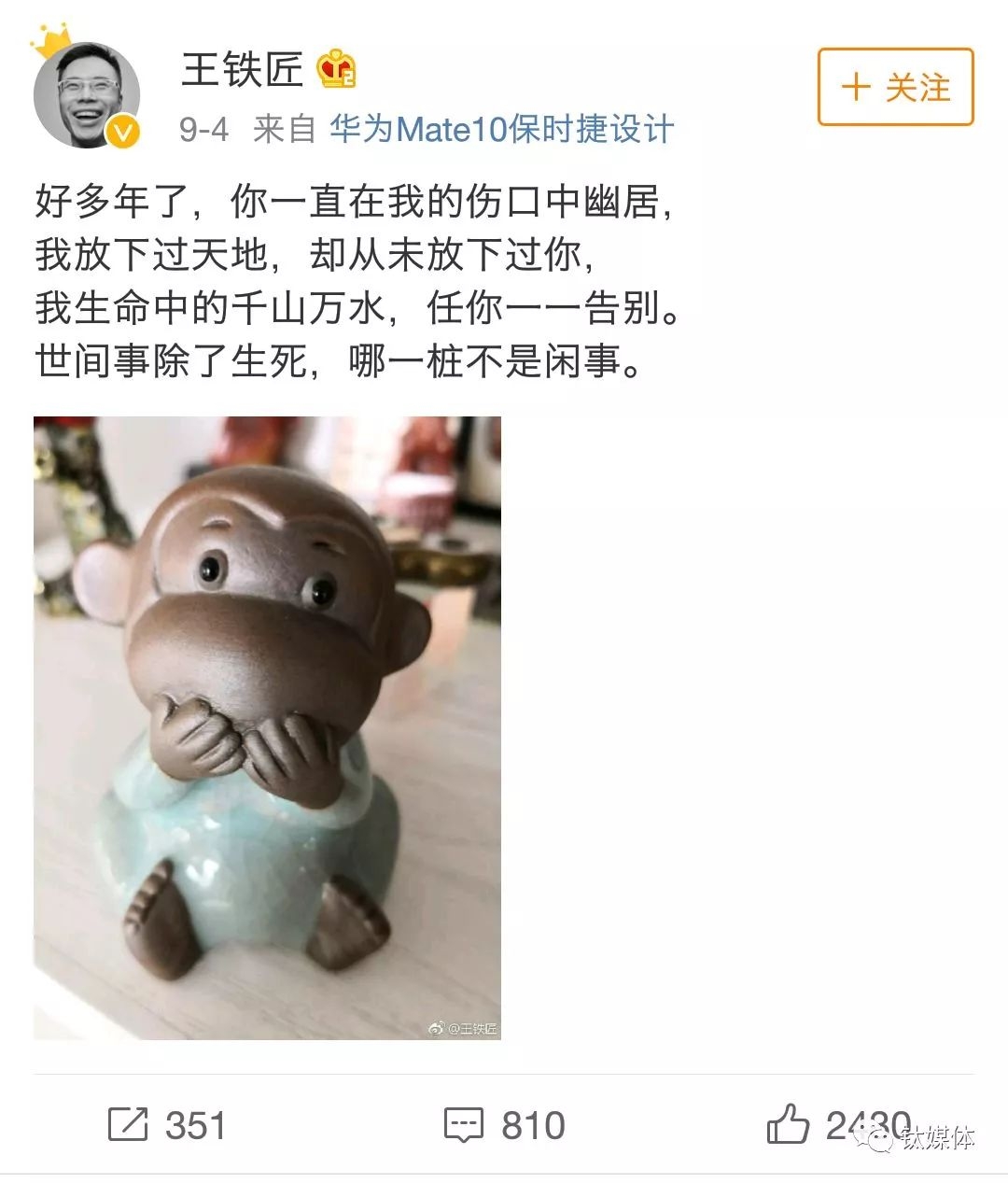 9月4日王欣发了一篇微博,引用仓央嘉措的情诗,暗示从此告别快播。“好多年了,你一直在我的伤口中幽居,我放下过天地,却从未放下过你,我生命中的千山万水,任你一一告别。世间事除了生死,哪一桩不是闲事。”
