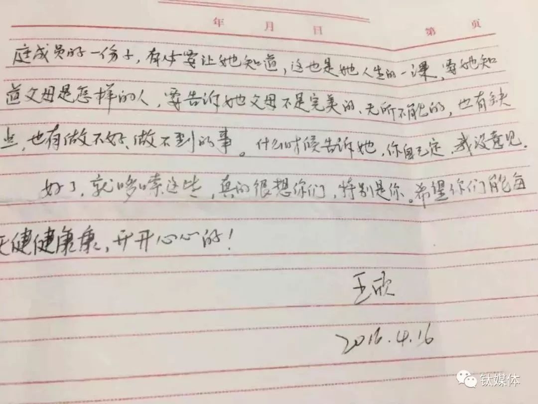 她还在微博写道,这几天在家里整理东西,看到了几年前老公在狱中时写给她和丫头的几封信,又想起很多往事来。