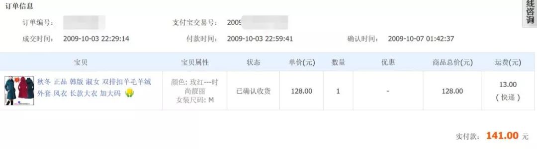 那一年,中国网购用户规模突破1亿。陈筱也成为网购大军中的一员,2009年10月3日晚上,她在大学宿舍打开方正牌台式电脑,登上淘宝网下了第一笔订单——一件128块钱的玫红色韩版羊毛大衣,运费13元。