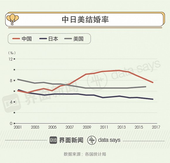 让中国人担忧的事不只有“离婚率连续15年上涨” ,还有“结婚率连续4年下跌”——2017年,中国结婚率已降至7.7‰。