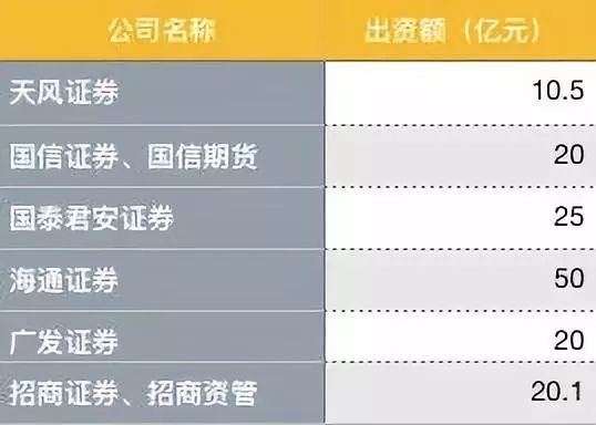 加上11月2日成立资管计划的天风证券和国信证券,以及11月5日完成出资的国泰君安证券,截止目前,6家券商共计出资145.6亿元,占11家券商总出资额的近6成。