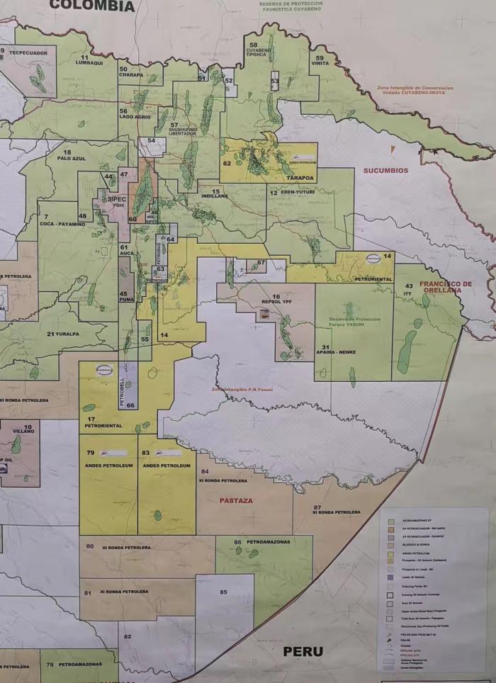 厄瓜多尔安第斯石油公司是中石油与中石化成立的合资公司,目前在厄瓜多尔拥有5个区块,包括北区62区块、南区14、17区块,此外还取得了79和83两个区块的勘探开发权。