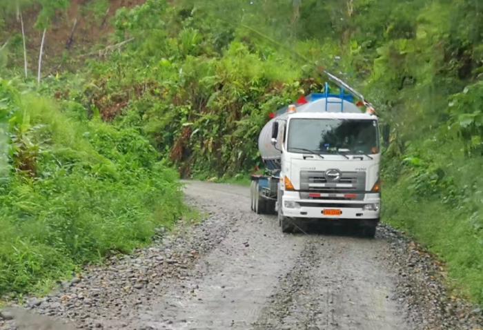 在省道上行驶50多公里,便进入南区油田的自备道路。这条道路用鹅卵石铺设,路旁延伸着输油管线,一辆辆装载着机械设备的重卡与满载的油罐车擦肩而行。